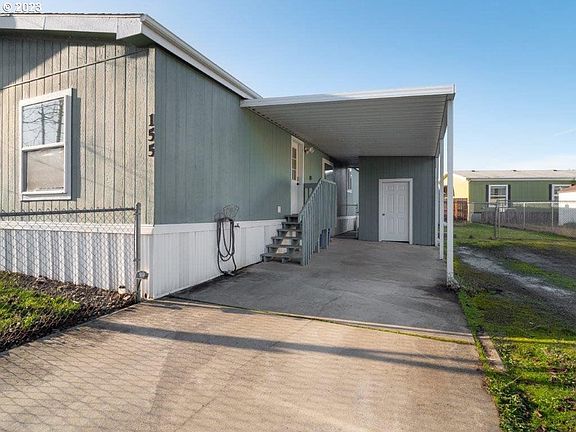Split-room layout home right in Roseburg?s River Place MFH Park. Inside you will find a spacious primary room with bathroom and large walk-in closet, inviting living space, kitchen with pantry, and much more. Heat pump for heating/cooling. Outside you can enjoy the covered deck and large fenced yard. Carport room and outbuilding for all of your storage needs. And last, but not least LOTS of parking space! $5,000 paint credit with full price offer. Space rent $715/Mo (utilities not included).