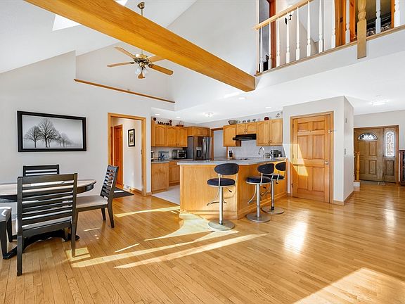 This stunning Wilbraham home sits on nearly 2 acres offering a blend of luxury & practicality. The open-concept kitchen & family room boasts soaring two-story ceilings, abundant natural light, & seamless indoor-outdoor flow w/ sliders to the rear yard. Hardwood floors stretch throughout, & the second-floor loft overlooks the main living area. A main-floor primary bedroom features a remodeled ensuite w/ a glass-enclosed shower. A first floor laundry room, half bath & dining room complete the main floor. Upstairs, find two bedrooms & a full bath, perfect for family privacy. The finished basement, just 4 years old, includes a half bath, office & rec room. Enjoy a front porch w/ views of a horse farm, two-car garage, owned solar panels (no lease required!) & a new 2022 roof. Conveniently located near Wilbraham’s favorite dining establishments, top schools & GreatHorse Country Club, this home is both turn-key & energy-efficient. Showings start 2/5 schedule your showing today in Showingtime!