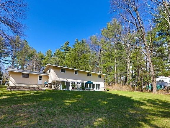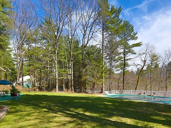Beautiful 4 bed 2.5 bath California contemporary with 2-car garage, located steps from Hop Brook Conservation Land! Enjoy miles of walking/jobbing trails, an abundance of wildlife and cross-country skiing and even skating on the pond in the winter! Circular driveway, tennis court with basketball hoops, amazing backyard with views, in-ground pool, level lot, two big garden beds and a massive patio for entertaining highlight the exterior! Granite kitchen with tiled backsplash and breakfast bar opening to formal dining room with vaulted ceiling will impress! Living room with remarkable stone fireplace and vaulted ceiling, fresh paint and hardwood floors throughout rounds out the 1st floor. 2nd floor with three generously sized bedrooms including a master suite with en suite bath and his and hers closets. All baths feature granite countertops. Large game room, family room, guest room, half bath, laundry room and 2014 natural gas energy saver heating system are presented in the lower level.