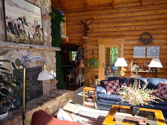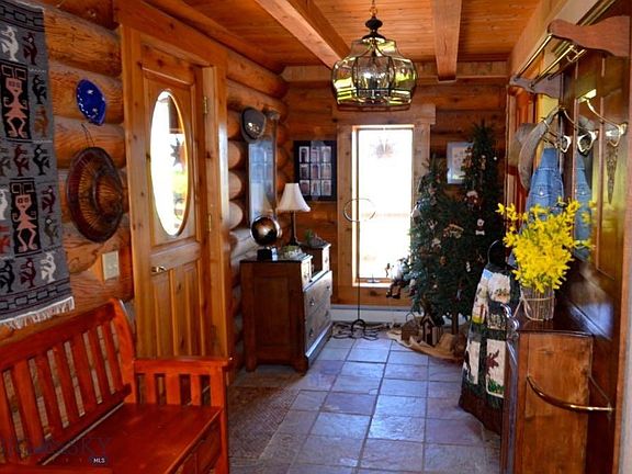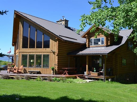 This beautiful log home combines custom design with natural elements and spectacular views 21+ acres. The impressive stone fireplace and wood beams in the living room are captivating while the two story floor to ceiling windows take in the views of Sawtooth Mountain and the Pioneer Mountain Range. The gorgeous kitchen looks out at Maverick Mountain Ski Area and has a large walk in pantry & a working wood stove. Also on main floor, formal dining room, den/library, a beautiful sun porch for casual dining or just relaxing and tiled entry way. The loft Master Suite has a large walk-in closet, master bath w/jetted tub & large shower, office, exercise area, & craft room. The basement has a game room with pool table, full bath, storage/utility room, 2 guest rooms & a family room with a walk-out covered patio. Enjoy the sunrises and sunsets from the amazing decks on this well cared for home. This property also has a three-car garage with a large finished bonus room above & other outbuildings.