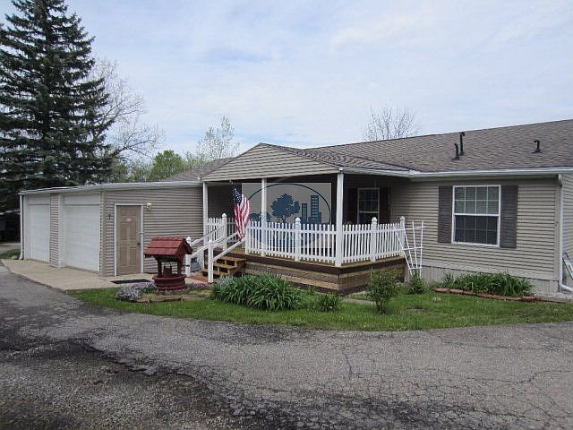 Spacious Open Floor Plan - 1647 sq ft - Lovely Entry opens up into the large Great Room with a stone fireplace (never has been used) & cathedral ceilings - sliders lead to the deck at the back yard. Master bedroom with walk-in closet & spacious master bathroom is at one end of home and 2 bedrooms, full bath & laundry room is at the opposite end of the home providing lots of privacy. Oak kitchen has a center island & lots of cabinets plus a pantry -- bar w/stools open off the entry area into the kitchen. Covered front porch to sit and enjoy the comfort of the outdoors -- 2 car attached garage. Waterfalls Senior Community is a 55 years of age or older community. Rules & Regulations a/v