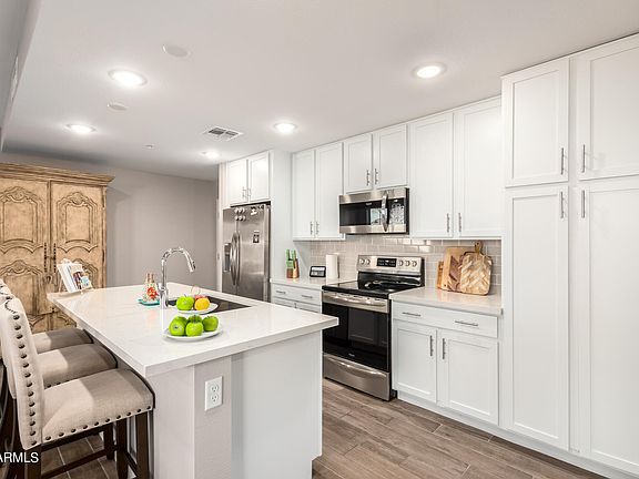 STOP THE CAR!!! HARD TO FIND SINGLE-LEVEL CONDO NEAR DOWNTOWN CHANDLER & 202 FREEWAY - WITH SPACIOUS GREAT ROOM, 2 SPLIT BEDROOMS & BATHS, DIRECT ENTRY FROM PRIVATE 2-CAR GARAGE. METICULOUSLY DESIGNED AND UPGRADED WITH QUARTZ COUNTERTOPS, WHITE PULL OUT CABINETS & PANTRY, STAINLESS STEEL APPLIANCES IN LARGE OPEN KITCHEN WITH MASSIVE KITCHEN ISLAND/BREAKFAST BAR! UPGRADED TILE PLANK FLOORING WITH CARPET IN BEDROOMS ONLY. ALL APPLIANCES CONVEY INCLUDING WASHER/DRYER IN PRIVATE INSIDE LAUNDRY. COZY CONVERSATION ENTRY PATIO WITH NORTH EXPOSURE - PERFECT FOR HAPPY HOUR! BRING YOUR FUSSIEST BUYERS! PLEASE GIVE SOME NOTICE SO SELLERS CAN LEAVE THE PROPERTY DURING YOUR PRIVATE SHOWING. NO PETS OR SMOKING IN THIS 2-YEAR NEW CONDO! THIS HOME SHOWS LIKE A MODEL! SET YOUR APPOINTMENT NOW