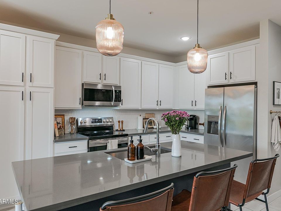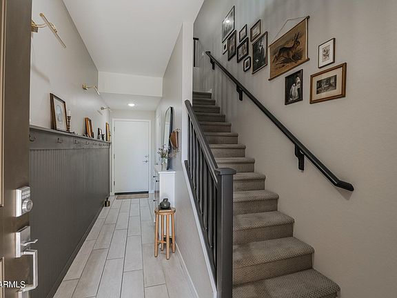 Welcome Home to the gated Waterfall Villas community! Tastefully designed with today's modern finishes, this like-new townhome offers a split 3 bedroom floorplan, 2 bathrooms, and 2 car attached garage. Upon entry, you'll be greeted by wood look tile floors, upgraded stair rail, and a decorative wainscoting accent wall. Head upstairs to the open concept greatroom plan complete with 9 foot ceilings, designer paint, upgraded lighting, and a 12 foot slider that leads you to an oversized covered balcony overlooking a grassy common area. The gorgeous kitchen features white cabinets, quartz counters, tile backsplash, stainless appliances, and a large island with breakfast bar and pendant lighting. The spacious owners suite includes a separate exit onto the balcony and a luxurious ensuite bathroom with double sinks, quartz counters, and tiled walk-in shower. This fantastic community offers a community pool, covered ramadas, tot lot, and beautifully manicured landscaping. Conveniently located near schools, shopping, restaurants, and minutes from the 202 freeway. Don't miss out on the incredible opportunity to become the proud new owner of this model-like townhome!