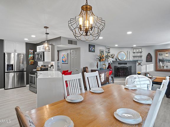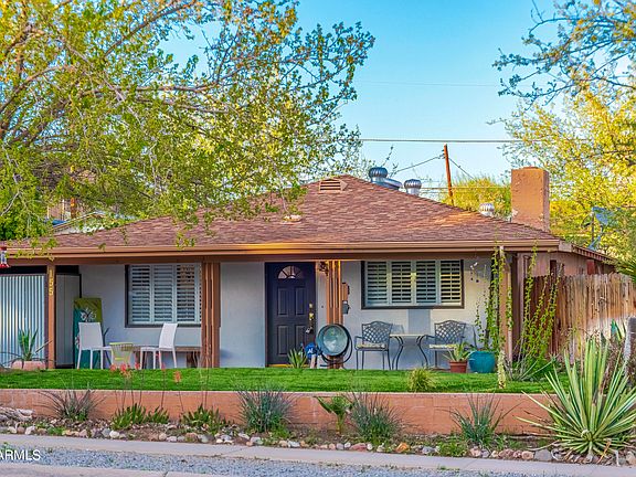 Discover this exquisite mid-century residence nestled in the heart of downtown Wickenburg. Conveniently located near shopping, entertainment, and restaurants, this home presents a nice blend of modern convenience and timeless charm. Boasting three bedrooms and two bathrooms, this residence showcases a remodeled kitchen and bathrooms. Delight in the cozy ambiance of the fireplace, stainless-steel appliances add a touch of sophistication to the culinary space. Luxury vinyl flooring, complemented by the convenience of an inside laundry room. An extra bonus feature of this property is a detached guest house complete with one bedroom, one bathroom, and a full kitchen—a perfect retreat for visitors or potential rental income. This property offers a perfect business opportunity for short term or long term rental. The main house features 3 bedroom & 2 bathrooms with inside laundry room with a total of 1176 sf. The separate Guest House features 1 bedroom, 1 bathroom, kitchen and is 480 sf for a combined living square footage of 1656 sf. Home being sold as-is.