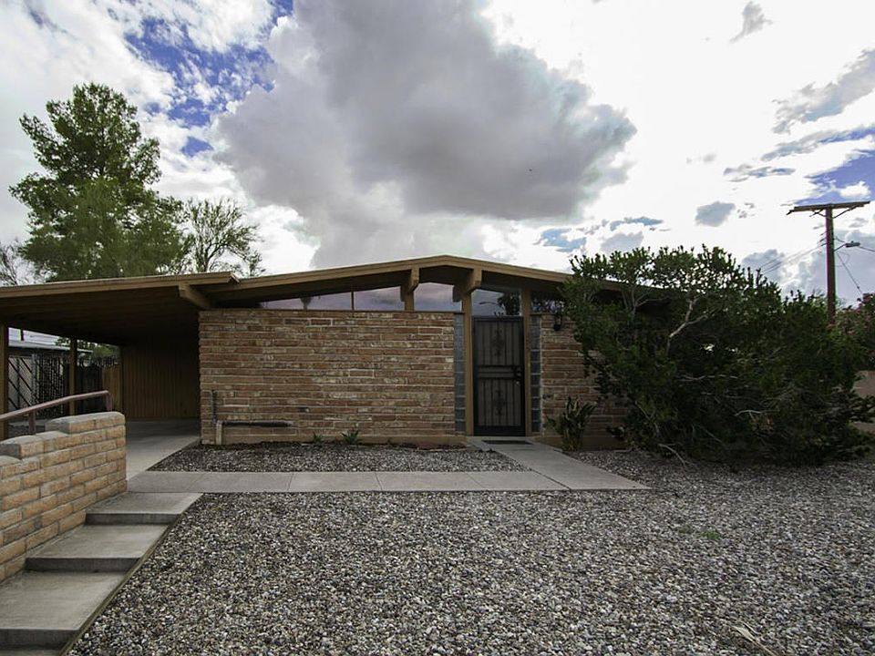 For more information on this property, contact the Listing Agent, Janina Miller at (520) 237-3111 or JaninaM@LongRealty.com. Mid-Century Modern eastside burnt adobe brick ranch home features newer flooring & interior paint. Kitchen & baths have newer solid wood cabinets. Kitchen has new counter tops and sink. New light fixtures throughout. Also includes breakfast bar & built-in shelving. Master Bath has spacious walk-in shower. Two fully fenced back yards with a shed for more storage. Mature landscaping. Enjoy the outdoors & stunning mountain views on the backyard covered patio. Highly desirable eastside Tucson location at Broadway/Kolb. Plenty of parking. RV parking space available. No HOA. The evaporative cooler, water filter, irrigation system are As-Is.