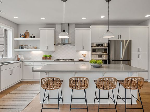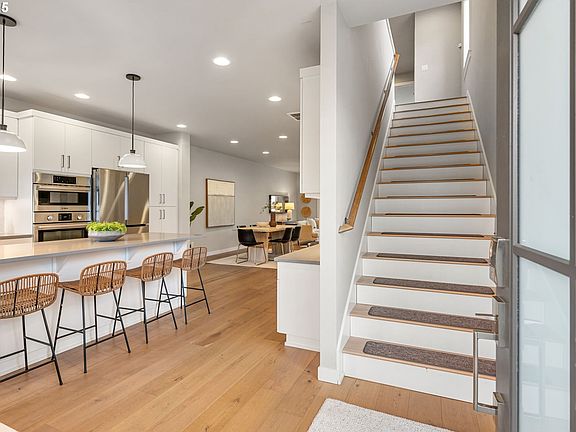 This home blends luxury, functionality, and location! Nestled in the vibrant Eliot-Williams Corridor, this beautifully designed 4-bedroom, 3.5-bathroom contemporary home offers the perfect balance of style, comfort, and functionality. Large windows flood the space with natural light, creating a bright, airy, and welcoming atmosphere. The open-concept main floor is designed for effortless entertaining and everyday living. Beautiful hardwood floors add warmth and sophistication throughout, while the chef’s kitchen features a spacious island, BOSCH stainless-steel appliances, and a dedicated dining area. The adjoining living space, centered around a cozy gas fireplace, provides the perfect setting for relaxing or hosting guests. Sliding glass doors connect the living area to a covered deck, where you can unwind by the outdoor gas fireplace and enjoy year-round comfort in this thoughtfully designed extension of your home. Upstairs, the private retreat includes three spacious bedrooms, including a primary suite with a walk-in closet and a spa-like bathroom featuring dual sinks and a glass-encased walk-in shower. The convenience of an upstairs laundry, complete with a washer and dryer, makes daily routines seamless. A self-contained, ground-level suite offers incredible flexibility, whether used for rental income, a family room, a guest retreat, or a private home office. With its own exterior entrance, this space includes a full bedroom and bathroom, a kitchenette with a built-in microwave, beverage fridge, laundry hookups, and a spacious living area that provides both comfort and privacy. The professionally designed yard features mature plantings, café lights, and a fire pit with Adirondack chairs (included). A turf lawn and exterior lighting on timers ensure effortless upkeep. Located in one of Portland’s desirable and walkable neighborhoods, this home is just steps from grocery store, coffee shop, yoga studio and restaurants.
