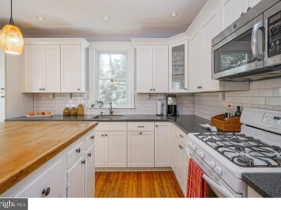 Move right in to your gorgeous brick twin home with its great traditional charm. The first floor features a HUGE kitchen and a dining room made for entertaining. This lovingly-maintained home sits in the perfect location...two-and-a-half blocks to the center of town with all that Collingswood has to offer, yet on a quiet street where you can enjoy the tranquil setting of the deck and back yard. Walk to restaurants, shops, the PATCO station, and Cooper River Park. You'll enjoy plenty of serene mornings and evenings on the lovely front porch (roof and decking re-built in 2016). Enter the house and its bright and airy living and dining rooms with original hardwood floors, leading to one of the nicest kitchens around. The recently-renovated kitchen features gorgeous cabinets, Corian counters, and a wonderful custom-built island topped with reclaimed barn wood. The kitchen door leads out to a new deck (built in 2018) and a well-screened, low-maintenance, fenced back yard, where you can plant vegetables or just enjoy the breezes. The hardwood floors continue upstairs where you'll find three bedrooms and a bathroom that was completely gutted and replaced in 2017. The large, dry basement has plenty of storage and brand new (in 2018) washer and dryer. Hot water heater was new in 2015. Two-car driveway that is shared with next door neighbor. This is a great house for first-time buyers or down-sizers.
