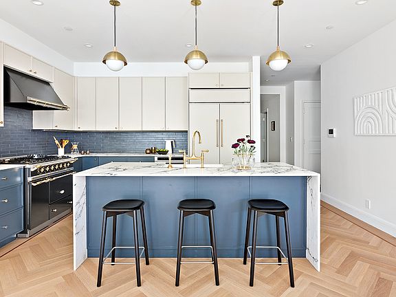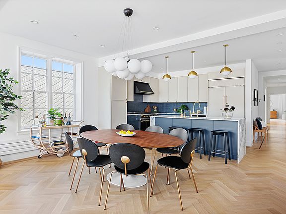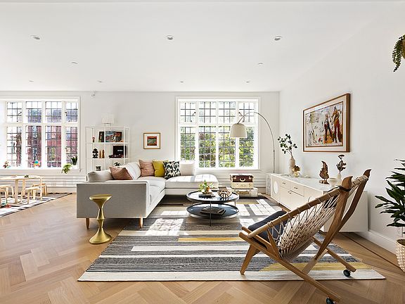 155 Noble Street is a brand-new residential condo conversion with no equal anywhere in Brooklyn. A distinctive freestanding landmarked Neo-Gothic building, with a tax abatement, on an extra deep and 30' wide lot offers five loft-like full-floor units, each with four sunny exposures, high ceilings, private rooftop spaces with panoramic views, basement storage rooms, virtual doorman and keyed elevator access, ranging from 2500 SF to 3600 SF. Enjoy full-floor living and sophisticated yet homey interiors designed by local and award-winning designer Cece Stelljes. Massive chef's kitchens and windowed bathrooms have been re-imagined with superior materials and appliances to match the drama and scale of this one-of-a-kind building. The elevator offers private keyed access to each unit and also takes you to the rooftop where there is a private cabana for each unit with a locked door allowing for privacy in addition to unobstructed panoramic views of the East River, Manhattan, and the full skyline. Multi-zoned heating and cooling, vented LG washer and dryer, herringbone inlaid oak floors, oversized energy efficient Pella windows, treetop, skyline and picturesque church views, and custom designer lighting are just a few of the additional special features that you will enjoy. Unit 4 has a unique birds-eye view of the Brooklyn and Manhattan skylines from the Living Room, the master suite, and both additional bedrooms. Enjoy incredible light all day long from 4 exposures, and a direct and protected water view from the private rooftop cabana. Enter the building through an elegant lobby and take the keyed elevator into your unit where you will step off into your own gallery and mudroom. Prepare to be greeted by a dramatic 30' wide living room drenched in light by eight casement windows across and an open loft-like space that accommodates a large living and dining room in addition to an alcove space that makes a perfect media area or playroom. The kitchen is a work of art, the likes of which you have never before seen in Brooklyn. Custom black and brass LaCanche Cluny Volnay vented range, fumed oak gray cabinetry, Calacatta Paonazza bookmatched marble countertops, built-in Bosch microwave, 42" SubZero fridge, and Bosch dishwasher will get your entertaining off to the perfect start and is the ideal accompaniment to the oversized living space. Head towards the bedroom wing in the back where three sizable bedrooms and a fourth windowed home office offer more space than you can imagine. The master bedroom spans the entire 30' width of the building and comes complete with a large walk-in dressing room and the windowed master bathroom of your dreams. Walls and floors of stellar white marble, tundra grey marble slab vanity countertops, a huge walk-in shower, Signature freestanding tub, and custom vanities for storage will take your breath away. Two additional bathrooms throughout are sizable and offer a playful yet sophisticated combination of unique hand-made concrete Moroccan tiles, London grey Quartz vanity countertops, Kohler tubs, walk-in showers and brushed nickel finishes. There is even a second ensuite bathroom for guests. A large windowed home office has protected views and needs to be seen to be believed. Live on everyone's "favorite" tree-lined and Landmarked block in Brooklyn and enjoy the majesty of a truly one-of-a-kind historic icon just a half a block from the conveniences of Manhattan and Franklin avenues and all of the amenities that the North Brooklyn waterfront has to offer, including Parks, award-winning restaurants and schools in every direction. The G train at Greenpoint Avenue is one block away, and there are also monthly parking spaces available in nearby local garages.