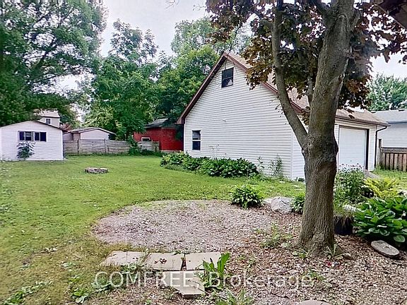 Welcome to this charming 1 1/2 storey 1187 square foot home offering a blend of comfort and functionality. The bright kitchen features a central island, perfect for daily living and entertaining. This carpet-free home includes beautiful hardwood and tile flooring throughout. With 4+1 bedrooms, there's plenty of space for a growing family, guests, or a home office. The landscaped yard provides a peaceful outdoor setting complete with a garden shed, while the detached garage adds convenience and extra storage. Sold as is to the listing, and many updates including new central air, new water heater, and all new bathroom (2025).