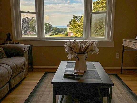 Perched in an established subdivision sits this 3 bedroom 2 bath home, with its long range mountain views from the living room coming home looks cozy! At Approximately .90 of an acre the front yard is massive with the back portion featuring back deck and new tidy chain link fence with large drive thru gate. New double doors from the deck lead you back inside to the kitchen which like the living room and hallway feature hard wood flooring with all bedrooms and bathrooms recently redone in new vinyl laminate flooring.Downstairs in the basement area the ceilings fall just short of the 7' "finished rule" and have not been included in heated square footage, but with its flooring and drop ceiling it is a great den/office/bonus area. Windows and shutters are brand new, just completed! Upgraded gutter drainage, updates to bathrooms are just a few up the updates this seller has done.Kitchen appliances will remain: Attached microwave,Stove,fridge,and dishwasher. Schedule your showing today !