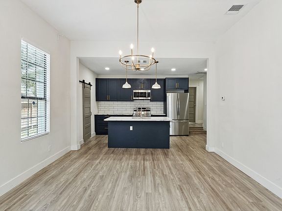 Step into an open-concept living area featuring new stainless steel appliances, contemporary finishes, and plenty of natural light. The master suite includes a private bathroom with a standing tub that has been conveniently converted to function as a shower as well.