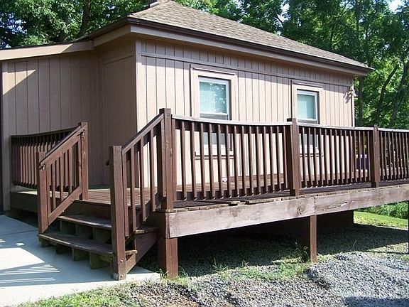 Great starter home! This cozy house features two bedrooms with large living room and bright, open kitchen/dining/utility area. Bath has antique claw-foot tub. Recent updates to home include roof, replacement windows, hot water heater, updated wiring/breaker box, heat pump, and floors in bath, kitchen, and utility area. Living room and bedrooms have original hardwood floors. A huge deck wraps around the house for plenty of room for outdoor enjoyment. Huge oak and walnut trees provide lots of shade. Motivated seller....bring us an offer!!