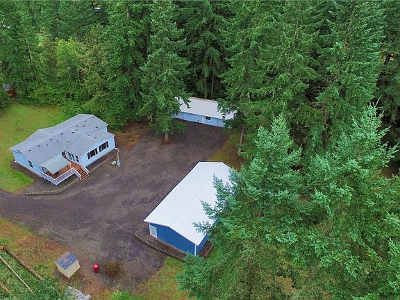 Great opportunity in the Napavine school district. MH just under 1800sf w/decks front & back. 4 bay garage/shop with electric doors. 2nd shop with office, half bath and 2 more garage spaces. The home has granite counters, pellet stove and forced air heat. New carpet/paint/pumphouse. All appliances stay including Bosch dishwasher. Claw foot tub in master along with newer tile shower. Over 3 acres of solitude, great yard space & woods. RV parking. Close to I-5 & recreation.