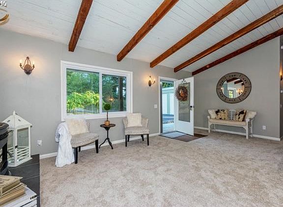 *A Creek runs through it. Beautifully remodeled country cottage on 1.3 private acres with a Huge shop and separate living quarters. Vaulted open beam ceilings throughout, Brick fireplace with insert, New roof, New windows, New carpet and vinyl, updated open kitchen with SS appliances, New counters and backsplash, Slider leads to large deck overlooking creek. Big Shop with separate living space. RV parking. Updated Rustic charm.