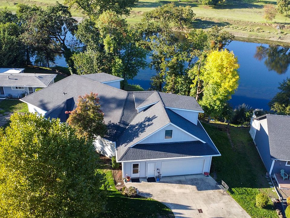 These views will make you stop and stare! This beautiful 3,184sf main home on 1.44 acres of South Umpqua river front is just waiting for you! Tall ceilings throughout. Open concept living space. Beautiful big kitchen with tons of storage space, pantry cabinet, island with eating bar plus serving counter for big events with friends and family! Dining and living room with stunning views! Large master with walk in closet plus 3 additional standard closets expanding the entire length of 15ft wall. Jack and Jill bathroom to large guest room. Office with wood framed bay windows. Upstairs has an open loft with tons of potential, big room 40x14.5fg small room 22x20ft with water hookups for upstairs bathroom. Tons of space to add additional rooms or use as a game room to host events! The original home "Fishermans Cabin" could be used as additional space for family gatherings or storage. Detached garage converted for studio apartment plus work space with its own laundry, kitchenette and bathroom. River frontage to the beautiful South Umpqua with a patio you could spend a whole day just admiring the neighboring livestock, turtles and fish. Come see it for yourself!!