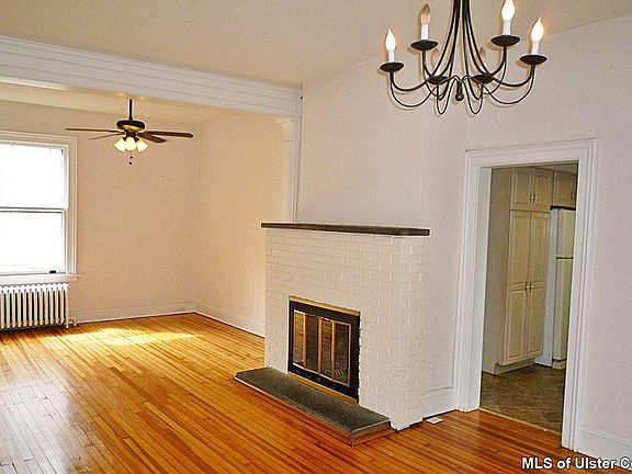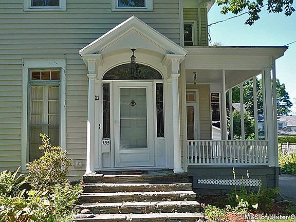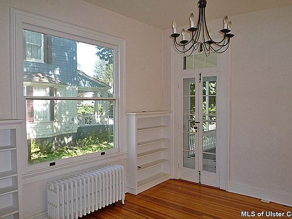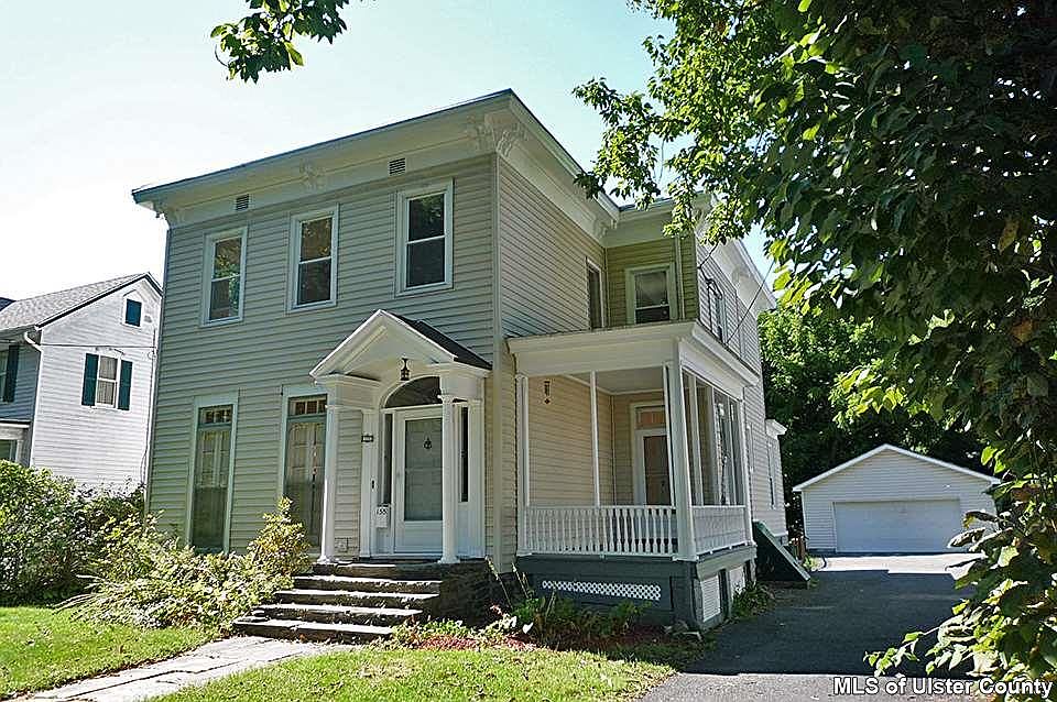 This lovely and spacious home, on one of Kingstons best streets, is walking distance to the thriving uptown scene. Built in 1869, this 5 bed, 3 bath home features many original details including newly refinished hardwood floors, high ceilings, built ins and large windows that flood each room with light. A formal entry reveals the bright living room with brick fireplace, open dining area, a front parlor with half bath, and a covered porch for morning coffee. The enormous eat in kitchen with wood cabinets has plenty of storage, newer appliances, and opens onto a sunny back porch and huge deck. A ground floor bedroom suite has a full bath. Take the grand staircase up to four more bedrooms, each unique in character. There is a beautifully updated bath, half bath and laundry room upstairs too. The back stairs lead down to the kitchen. The oversize garage is great for storage or a workshop. The fenced, grassy back yard has plenty of room for gardening or play, and there is even an antique stone hitching post!