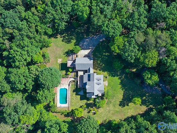 Private, 5 acre, 4 bedroom, 4 bath, inground pool, 3 car garage home just 25 minutes from Redstone Arsenal (gate 1)! 15 minutes to the Tennessee River. The remodeled kitchen and primary bathroom boasts granite countertops and many rooms have hardwood. The 4th bedroom could be a second primary and has a separate entrance. With large windows (2014), New Roof (2021), New Pool liner (2021), one New HVAC (2024), skylights and two Stone fireplaces, one in the master bedroom, this is the home to see.