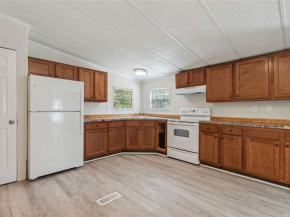 Charming 3 bed, 2 bath mobile home nestled on a spacious 1.08-acre lot, built in 1986. This cozy abode boasts a welcoming fireplace in the living room, a convenient shed for extra storage, a generous pantry, and new luxury vinyl plank flooring throughout. Enjoy the convenience of a cooktop and refrigerator. Recently updated electrical outlets, light fixtures, ceiling fans, interior and exterior doors & fresh paint make this home ready for a new family to make it theirs! Outside, revel in the expansive yard perfect for sports, activities, and entertainment.