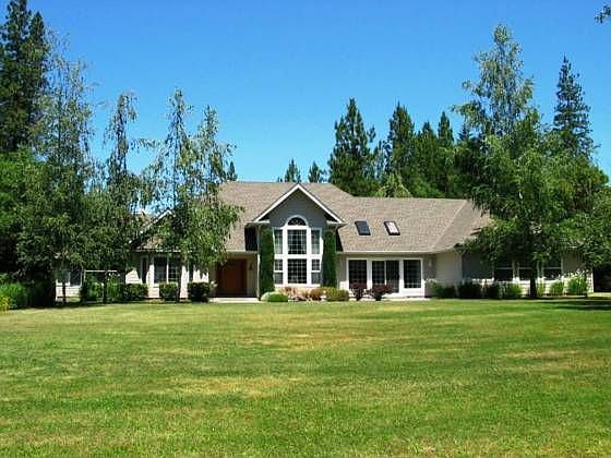 Beautiful Oregon Dream Home with a big shop, orchard and stunning, year-round fish pond with tons of bass and blue-gill on 5 level acres of wooded land. Gourmet island kitchen with Corian counters, breakfast bar, Jenn-Aire appliances including double convection ovens, maple cabinets, walk-in pantry and 3 China cabinets. Formal dining with cathedral ceilings and adjacent sun room. Large master suite complete with den, 2 walk-in closets, sitting room and spa-like master bath with tub and large...