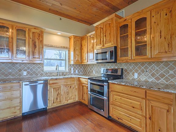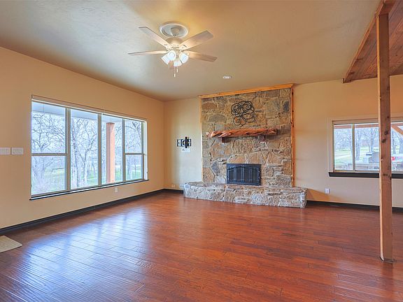 BEAUTIFUL HORSE PROPERTY Approx 20 acres pipe fenced and cross fenced with electric gate. 3 bedroom 2 bath 2 living farm style home. Home has out door living kitchen area, 3 stall barn with tack, feed and work area. Covered working pen, chicken house and so much more. Well pump is new replaced just a couple months ago. Also has 2 New pressure tanks...This charming place has a lot to offer, large scattered trees with rolling terrain.
