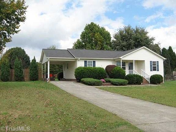 Adorable 3 Bedroom 2 Bath w/vinyl siding. Private backyard w/deck, storage building and patio sitting area w/privacy fence. Kitchen remodeled 2004 - newer black appliances, maple cabinets, countertops, backsplash. Island for cooking & island breakfast bar & newer light fixtures throughout, vinyl windows, laminate flooring, rocking chair front porch. Roof 2004. Move in Ready!