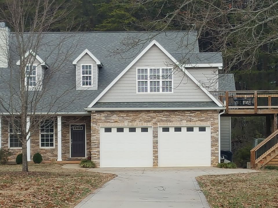 Well built 2 story with two full kitchens, added upper deck, private 2 acre lot that is flat for pool, added garage or shop etc. Open floor plan great for entertaining. Lots of windows. Large walk-in pantry, custom cabinets.