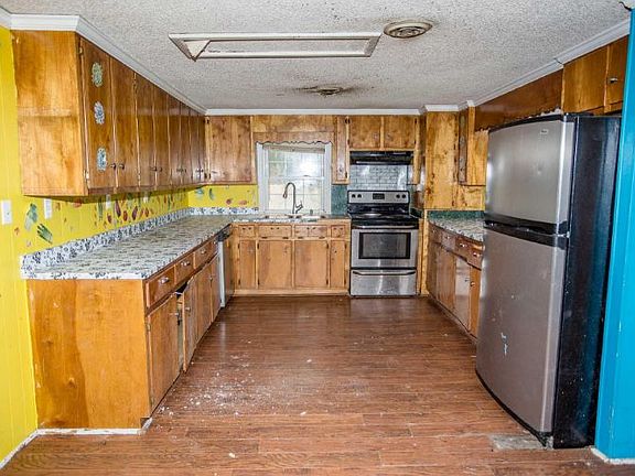 - RoomKitchenFeatures: Counter Tops-Formica, Cabinets-Stained, Floors-Laminate