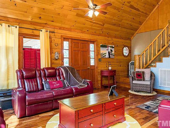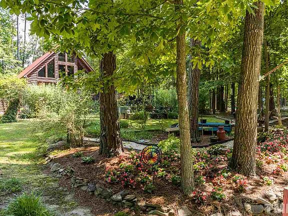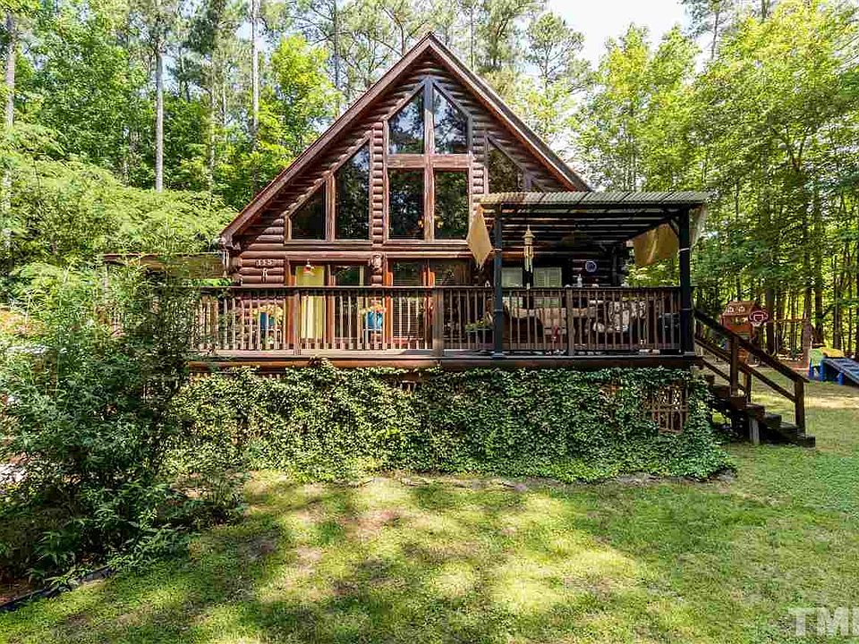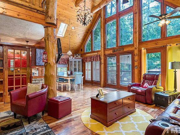 Awsome Log Cabin on almost 1/2 acre lot at beautiful gated community Lake Royale with numerous amenities. 3 bedrooms and 2 baths with 2 bed on 1st floor. Open floor plan with numerous windows, skylights and loft area with view of large lot. Nice yard with lots of trees and garden area.
