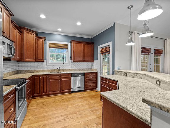 Located in the quiet subdivision of Cabin Branch, this truly desirable property offers a welcoming front porch, in-ground pool, numerous updates and a spectacular outdoor stone fireplace. NEW HVAC system and Bonus room mini-split, NEW hot water heater, NEW carpet throughout, NEW interior paint, NEW pool liner, and pool pump! Among the many upscale features inside you will find vaulted and coffered ceilings, crown moldings, wainscoting, and custom closet shelving. The kitchen opens into the living and dining rooms and features a large island, granite countertops, tile backsplash and custom pendant lighting. The owner's bath features double sinks, walk in closets and an oversized fully tiled shower with two shower heads and glass enclosure. The split floor plan allows for privacy and ease of living. Outside is truly an entertainer's paradise. The large pool, unique stone fireplace and spacious patio are prefect for family fun and friends. Even a dog run for your furry friends. Owner will provide $2,500. credit toward new kitchen appliances at closing.