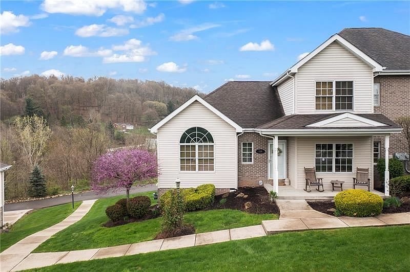 FRESHLY PAINTED CARRIAGE HOME WITH FIRST FLOOR MASTER SUITE AND WALK IN CLOSET OR USE THE SECOND FLOOR BEDROOM AS A MASTER WITH A FIRST FLOOR GUEST ROOM, CATHEDRAL CEILING IN GREAT ROOM; PELLA WINDOWS, FULLY EQUIPPED KITCHEN; COVERED MAINTENANCE FREE DECK, FINISHED LOWER LEVEL WITH WALK OUT TO CONCRETE PATIO UNDER DECK.THE UPPER LEVEL FEATURES TWO ADDITIONAL BEDROOMS EACH WITH WALK IN CLOSETS AND A FULL BATH. TWO VEHICLE GARAGE WITH PLENTY OF STORAGE SPACE; LOWER LEVEL FULLY EQUIPPED LAUNDRY ROOM AND LARGE STORAGE AREA UNDER THE STAIRS. THE HOA FEE OF /MONTH INCLUDES POOL, CLUBHOUSE ACCESS, EXTERIOR OF THE HOME CARE, PRUNING, MULCHING, SHOW REMOVAL OF THE COMMON AREAS. EASY TO SHOW