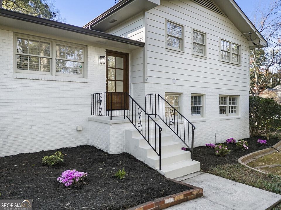 Welcome to this meticulously renovated property nestled on a private +/- 0.5-acre corner lot in a prime Sandy Springs location. This home has undergone a full transformation down to the studs with all-new electrical, plumbing, HVAC, kitchen, bathrooms, and a newly open concept floor plan with vaulted ceilings. The refreshed exterior boasts fresh paint and new landscaping that welcomes you upon arrival. Step inside to discover the bright and airy living space featuring tall windows that flood the area with natural light and hardwood flooring throughout. The spacious kitchen boasts new cabinetry and countertops, a timeless tile backsplash, KitchenAid appliance package, range hood, and a large eat-in island that invites casual dining and gathering. Doors off the dining space open to the large, fenced-in and landscaped backyard featuring a deck and paved patio space ideal for al fresco dining and outdoor entertaining. Upstairs, the primary suite boasts a large walk-in closet and fully renovated ensuite with a dual vanity and oversized frameless shower. The secondary bathrooms have also been entirely renovated with new vanities, flooring, tile and showers. Downstairs, the large flex space, complete with a fireplace and built-ins, presents a secondary living area ideal for relaxation and entertainment. The terrace level offers versatility with a large laundry room and bedroom equally suited to be a private guest retreat or quiet office space. With the storage space on the terrace level and 2-car garage that provides ample parking and additional storage, convenience is paramount. Enjoy easy access to everything Sandy Springs has to offer, including restaurants, retail, schools, the Perimeter area business district, hospitals, and entertainment options. Walkable to Abernathy Arts Center and nearby parks and trails, this home also offers proximity to the City Springs complex and community green space, as well as historic Downtown Roswell, the Chattahoochee River Nature Center, and I-285 and GA400 to navigate around town with ease.
