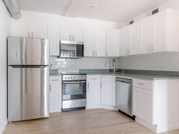 Inside, each thoughtfully designed 2-bedroom, 1-bath residence offers an airy open layout with central A/C, dishwasher and stainless steel appliances, and access to washer/dryer on every floor. High ceilings and abundant natural light enhance the sense of space, while sleek modern touches complement the building's industrial bones.
