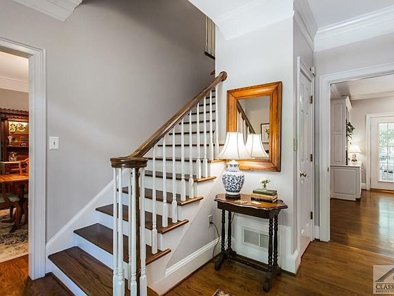 Beautiful traditional brick home on a cul de sac lot!! This well maintained Georgian home features both a formal living room with French doors, dining room, a spacious family room with a wet bar, built in shelving and a wood burning fire place as well as a large, open kitchen. The kitchen has been renovated with a moveable island, newer appliances, and painted cabinetry. The built in desk area is set off of the kitchen and could double as a sitting area with space for two club chairs! The upper level is home to 4 bedrooms and 3 baths. The master suite has a separate sitting area that most would use as a home office, 2 walk in closets and a sizable bath with a separate tub and tile shower. A new upstairs bath has been added to create an en suite guest bedroom and features gorgeous marble tile and countertops! The other secondary bedrooms share a full, hall bath. The basement boasts a large bedroom and full bath, an oversized den and tons of storage. This recreational area has a second wood burning fireplace, paneled walls, and three large storage closets. A large screened porch with access from both the kitchen and family room overlooks the private, fully fenced back yard. This fantastic home sits on a beautiful lot with low maintenance landscaping, tree house, fire pit area, and play space. Perfect for entertaining, gardening or just enjoying the privacy! Move in ready!