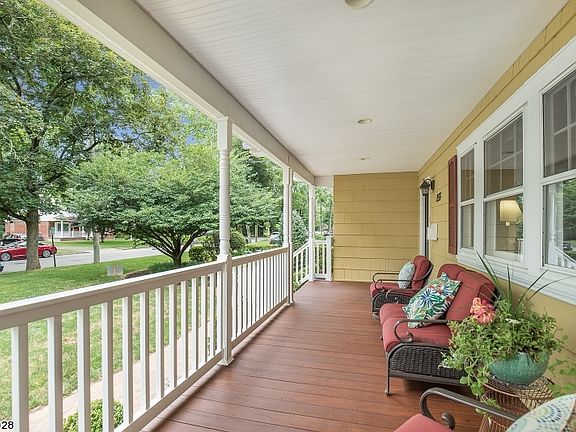This beautifully expanded 4 bedroom, 2 Full Bath Colonial Cape boasts a fabulous, wrap around lemonade front porch, gleaming Hardwood Oak Floors, an abundance of natural sunlight and updates galore! The first floor features a cozy LR with new gas fireplace, a sunlight dining room opening to an amazing, new gourmet chef's kitchen with center island, ss appliances and gorgeous granite counter tops. The master bedroom on first floor is accompanied by a new full bath and another bedroom. The second floor offers 2 large, dormered bedrooms and central full bath, recently updated. Finished Basement w/ rec room, gym ++