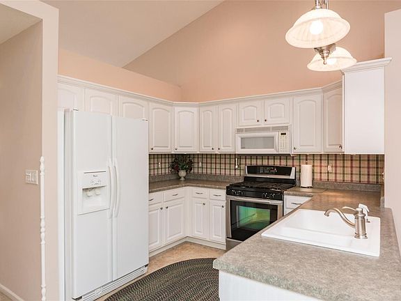 DOWNSIZING? RESIZING? Then this is the perfect home for you. Two bedrooms on main level with spacious master bedroom featuring a walk-in closet & private master bath. Kitchen includes all appliances & is open to spacious dining area with laminate flooring. Dining area opens to hearth room with gas fireplace & cathedral ceiling. From the hearth room you can access the covered deck leading to nicely landscaped fenced back yard. On the main level you will also enjoy a formal living area & main floor laundry (washer & dryer stay). Open stairway takes you to a finished family room with 2nd gas fireplace. The lower level also includes a bedroom with look out windows & full bath. There is still plenty of unfinished space for storage & crafting area. Other features include ceiling fans in most rooms, cathedral ceilings throughout main living area & two car attached garage. This move in ready villa is situated on a quiet cull-de-sac street with easy access to interstates and shopping.