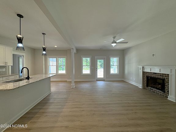 Features that make this home stand out include painted and trimmed garage interiors, beautiful Luxury Vinyl Plank flooring in the main living areas, Natural Gas Logs Fireplace, Oak Stair Treads, Upgraded Raised Height Bathroom Vanities with Granite tops, Upgraded Framed Bathroom Mirrors in Owners Suite, and Tankless Natural Gas Water Heaters and Gas Range!