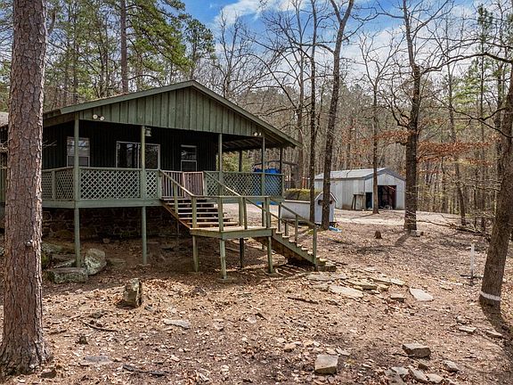 Escape to your own slice of paradise with this stunning lakefront home, nestled on over 2 acres of tranquil land. Whether you seek a perfect getaway, a lucrative short-term rental opportunity, or simply desire your private oasis by the water, this property has it all. Step outside and immerse yourself in nature's beauty on the expansive wrap-around covered deck, offering panoramic views of the picturesque lake. Perfect for unwinding, entertaining, or simply soaking in the serenity. Inside, discover the spaciousness and versatility of two living areas and an open concept layout, brimming with potential for customization to suit your lifestyle and preferences. Practical amenities abound, including a shed for storage, covered boat parking, and a metal drive-through boat shed, with electric wiring for winter storage convenience. And with the boat ramp just a few hundred yards away, launching aquatic adventures has never been easier. Plus, enjoy the added perk of having a well on the property. Call me today for a personal showing this lake front oasis.