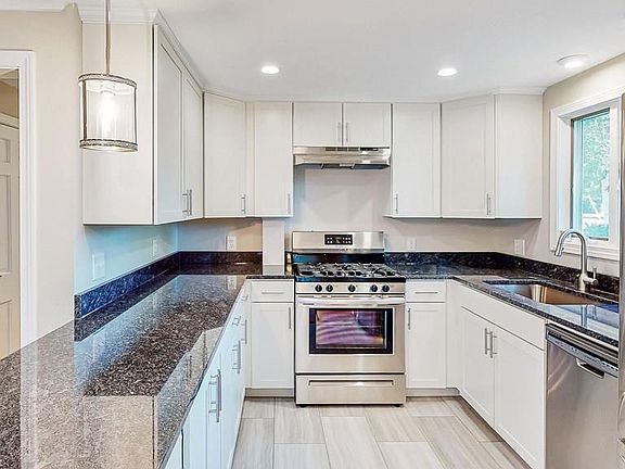 This Move-In Ready Cape with 1st floor Master Bedroom is a Dream Come True! Upon entering you are welcomed by an Open Layout that Overlooks the Kitchen, Living Room, and Dining Room. The Kitchen has been Completely Remodeled and comes with Brand New Stainless Steel Appliances, Granite Counter Tops, Breakfast Bar, and New Modern Cabinets! The Living Room/Dining Room have Gleaming Hardwood Floors, Recess Lighting, and a Lovely Fireplace to bring the whole room together. Upstairs has 2 more Bedrooms with Brand New Wall to Wall Carpet, Custom Built-In Drawers for extra storage, and a Completely Renovated Bathroom that belongs in a magazine. If you are looking for more space look no further; Partially Finished Basement that would make a great Family Room or Office. The Backyard has been Professionally Landscaped, has a Lovely Patio Overlooking the Yard, and is the perfect place to relax during these summer evenings.