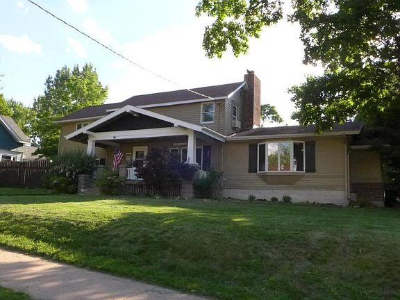 Spacious 5BR/3BA Classic 2 Story on landscaped corner lot provides parking for 4 in large insulated detached garage! Fenced back yard offers deck for relaxing, a 15x26 paver patio with built-in firepit, grass space for play and access into the tiled hot tub room! Huge eat in kitchen with lots of cabinetry, center island and new stainless steel appliances (1 refrigerator included); formal dining with laminate wood floors and arched doorway to the living room with wood burning fireplace. French doors lead to the foyer and big covered front porch and another set to the master suite with second side of the fireplace, full bath w/tiled floor & shower, walk-in closet and laundry. Four upper level bedrooms - one with built-ins and one with walk-in closet; full bath has new vanity. Newly finished lower level family room is a nice hang out area and can walk-out to the yard; brand new 1/2 bath! Newer boiler on demand; new water softener; newer ceiling fans. Ready & waiting for you!