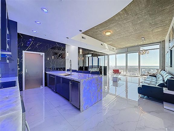 PENTHOUSE IN SOLAIRE AT THE PLAZA - DOWNTOWN ORLANDO'S PREMIER HIGH-RISE. This is a rare find and seldom available, it is a must see! If luxury, aesthetics and entertainment are what you fancy, you have found all of that and so much more. This fully remodeled, high-tech smart Penthouse offers an unparalleled lifestyle with top-tier finishes, cutting-edge features, and breathtaking panoramic views of the City Beautiful. Step inside to discover the luxurious illuminated marble kitchen, a true centerpiece of this Penthouse, featuring customizable lighting and aesthetically pleasing style. The expansive open-concept layout is perfect for entertaining, with floor-to-ceiling windows that flood the space with natural light and offer unobstructed panoramic city views. Motorized black-out blinds are installed throughout for effortless privacy and ambiance control. The primary suite is a luxurious retreat, boasting a massive bedroom, spa-like bathroom with high-end finishes, and a separate water closet for added comfort. Throughout the unit, you'll find sleek ceramic tile flooring, ceramic tile walls, elegant color schemes, and detailed trim work that elevate the overall aesthetic like no other. This prime location is fully walkable and just steps away from Orlando's best dining, nightlife, entertainment, sporting arenas and cultural venues including the Dr Phillips Performing Arts Center. There are two reserved secured parking spots located right by the resident elevator in the nested parking garage with 24 hour surveillance. Park your car and enjoy the vibrant and walkable downtown lifestyle. Solaire at the Plaza is currently undergoing an exciting transformation, further enhancing its status as Downtown Orlando's Premier Residential Tower. Enjoy 24 hour concierge service and facial recognition biometric entry, solidifying that Solaire keeps resident safety 1st place. Seeing is truly believing in this spectacular Penthouse soaring far above the rest, move-in ready and awaiting your arrival.