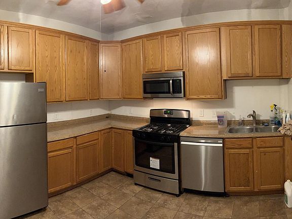 New stainless steel appliances, ceramic tiled kitchen floor, new gas boiler, fenced in back yard, ceiling fans in all bedrooms, kitchen and dining room. Tenant responsible for water and sewage, gas and electric, yard maintenance, 1st month and last month and security deposit to move in