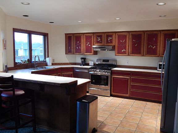 Serene location for this spacious ranch style home! Light and bright kitchen with tons of cabinets, stainless appliances, eating bar and tile floor. Take advantage of watching the wildlife while sitting next to the cozy wood burning fireplace or out on the back deck!