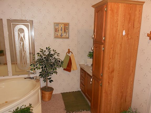 3 bedroom, 2 bath, living room, den or 4th bedroom, new carpet, heavy insulation package, oak cabinets, fenced yard, shade trees. This manufactured home is located in South Village which is just east of S. Topeka Blvd. on 45th street. South Village is a beautiful well managed community with wonderful residents. It has a swimming pool, tennis courts and basketball court as well as a play ground. Lot rent is $291 which includes all amenities of the community plus pays for your water sewer and trash pick up.