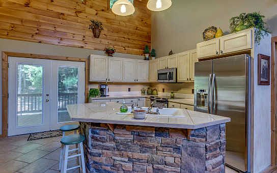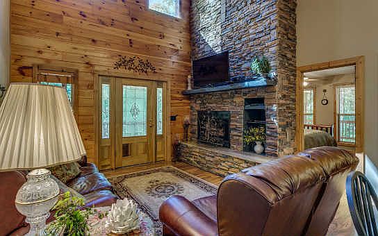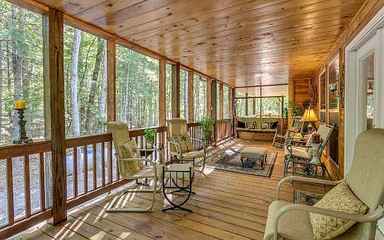 Tranquil setting for such a beautiful mountain home! Recent upgrades make this a must see! Doubles as one level living & a finished terrace level, providing even more living space.Tons of covered porch space, as well as a screened porch space that is accessed by both the back porch &master bedroom.Master BR is encased by floor to ceiling windows, & features a huge walk-in closet plus beautiful tiled shower & jacuzzi tub.2nd BR also on the main floor is surrounded by large windows adding plenty of light.Beautifully refinished kitchen cabinets accent the large open kitchen area & huge, stacked stone fireplace is the focal point of the great room.So many areas to unwind both inside & outside on the many covered porch areas & screened porch.