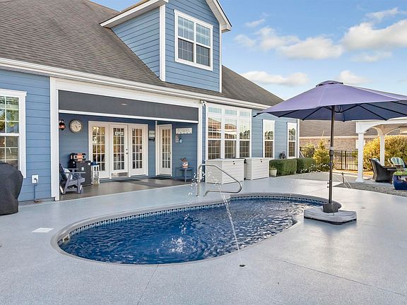 Sago Plantation is a natural gas and gated community. Beautiful 4bed/3ba home with a fenced backyard oasis including a private saltwater pool. Mature Foliage provides plenty of privacy for the corner lot. More privacy available with the automatic shades on the covered lanai and custom Amish pavilion with a comfortable lounging area and fit pit. This home is move-in ready and completely furnished. Inside you'll find an open and airy split bedroom layout with 3 bedrooms on the first floor. As you enter the home, the dining area is to your left with high tray ceiling. Stepping further you are in the spacious living area that has French doors that open to a lanai over-looking the pool and lake behind. Behind the dining and kitchen area there is a hallway with 2 bedrooms and bathroom. The large main bedroom suite is to the right of the living space and includes a nice sitting area and private access out to the lanai and pool. The kitchen has a bar height counter that overlooks the living area, eat-in dining, stainless steel appliances, granite counters and tile backsplash. Upstairs is an extra-large flex space currently being used for a bedroom suite, with bed, living space and office, large closet, and a full bath. The home has a Whole-House Generac Generator w/3fuels options. Sago Plantation is just a short drive to everything Myrtle Beach has to offer as well as 3 golf courses just a mile away.