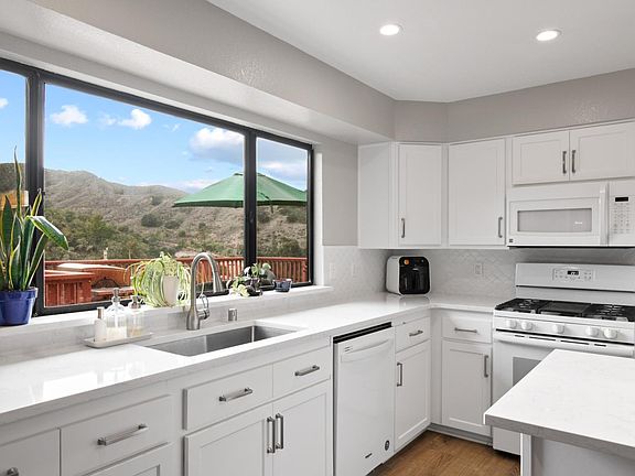 This beautiful 4 bedroom 3 1/2 home sits on 7.5 sundrenched acres. You will be surpised at how open and spacious this home is. Great for entertaining! New carpet, tile and stainless steel appliances. Large deck overlooks mountain views. Neighborhood Description Mountains keep the coastal fog away from this sundrenched canyon! Titus Park is located just down the street with a large swimming pool, smaller kiddy pool and Tennis courts with memberships available.