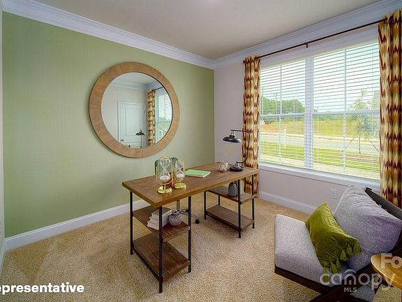 The Claiborne is a large open concept ranch home with wooded back views! A split floorplan gives the secondary bedrooms privacy with their own full bathroom. Primary bedroom is comfortably situated in the rear of the home and has s large walk in closet, dual vanity and walk in shower AND large garden tub. The open concept kitchen and dining area is open to the large living area. Many upgrades are included in this home such as crown molding throughout, wainscoting in the foyer, and Rev Wood luxury vinyl flooring throughout main living and dining areas. Brookside is a Ranch community located in beautiful Troutman with convenient access to downtown Troutman, Lake Norman State Park and all of the shopping and dining of Mooresville.