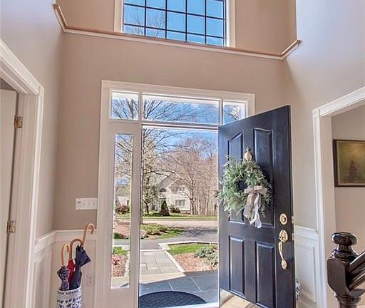 Fabulous Custom built Contemporary Colonial ready for you to move in, 2 story foyer leads to a kitchen that everyone wants to cook in, with new appliances including a 6 burner propane stove, lighted glass front cabinets, stone back-splash, granite island, breakfast nook and walk-in pantry; which opens to Sunken Family Room with Cathedral ceilings, ceiling fan, Custom stone front gas insert fireplace with raised hearth, windows seat with natural light Built in shelves, bright and sunny large dining room, living room and first floor office, hardwood throughout first floor; drop zone from 2 car garage with laundry room/mud room . The second floor has 4 bedrooms including the large master suite with dressing room, updated bathroom. All bedrooms have walk-in closets, newly remodeled hall bathroom ~Finished walk out lower level with full bath. Great back yard with large trex deck, set on 1.5 acre lot with professional landscaping, stone walls, flag stone walkway, trex deck great for outdoor entertaining , manicured lawn with irrigation system. Exceptional architectural details include transom windows, French doors , built-ins in the office and family room, Crown molding. Public Water&Sewer~Oil Heat. Updated mechanical systems.