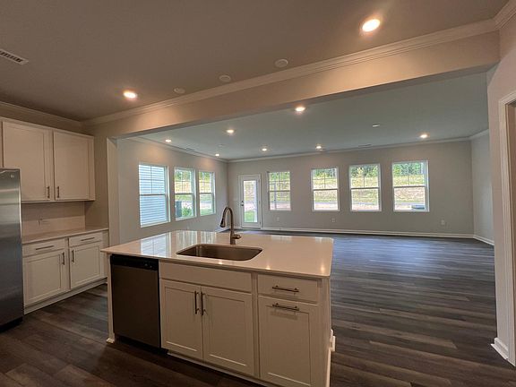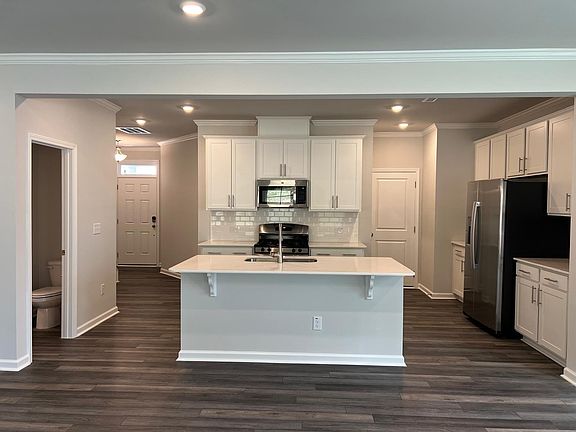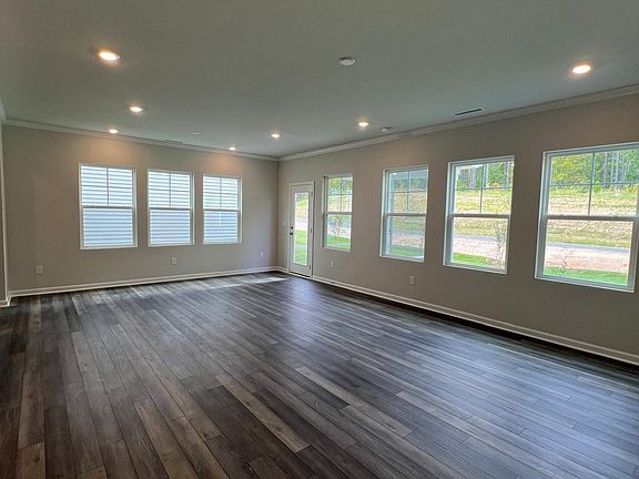 This modern two-story home features an open-concept main level with a spacious great room, dining area, and kitchen. A sliding door leads to a private patio, perfect for outdoor entertaining. Upstairs, you'll find a versatile loft, secondary bedrooms, and a luxurious owner's suite complete with a spa-like bathroom and a walk-in closet. A unique feature is the living room's peaceful view of a nearby green trail, offering both privacy and easy access to outdoor recreation.