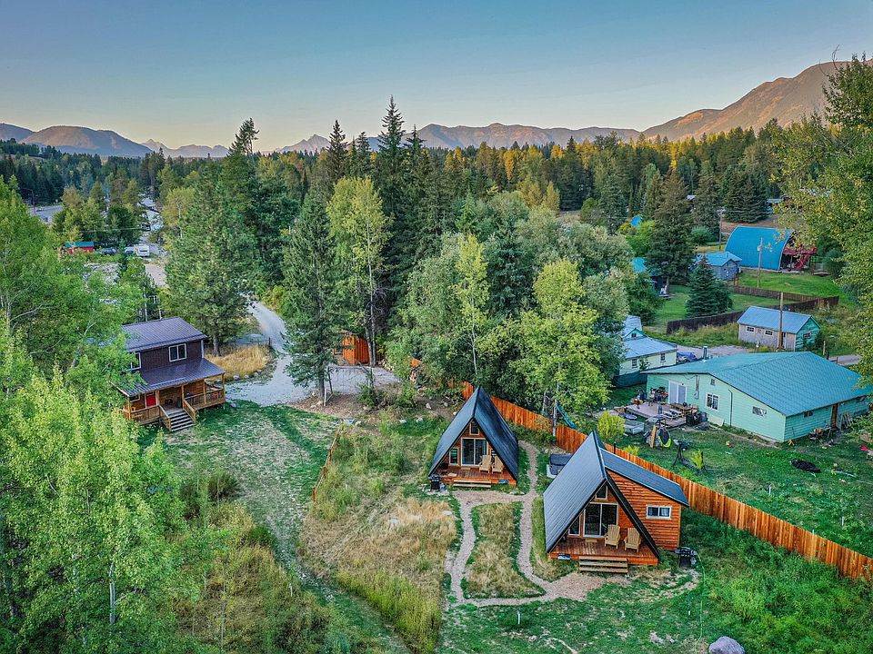 Proven income powerhouse just 7 miles from Glacier National Park! Good cap rate! Financials available with NDA, this charming retreat features four cozy cabins; two sleek A-frames, a spacious main cabin, and a darling tiny house- all with stellar rental history and repeat guests. Set on the new bike trail to Glacier and steps from local eateries and pubs, the location is pure Montana magic. Minutes to Hungry Horse Reservoir, adventure awaits in every direction. A rare chance to own a thriving hospitality gem in a high-demand area, plus seller financing is available! The main home is a 1344 square foot with 2 bedrooms and one bath. A warm wood stove is the perfect touch for this Montana home. The quaint cabin (tiny house) has a spacious loft with a queen-size bed, and is accessed by a steep staircase. For those not wishing to sleep in the loft or larger groups, there is also a queen-size futon bed downstairs in the living room. There is a full kitchen available (stove/oven, microwave, sink, dishwasher). There is a bathroom with a shower. Enjoy the sun setting behind Teakettle Mountain from the outdoor covered porch or catch the last light while inside through the many western windows. The cabin has terrific access all-year-round, being just 100 yards off of Highway 2. Just down the road you will find several eateries/pubs where you can catch live music on most summer weekend evenings. Across the road is Glacier Highline, a natural adventure park with ziplines and other fun activities for kids. Walk another hundred yards or so and you'll make your way to Coram's own whiskey distillery, where you can taste a little of Glacier's history. There is a brand new firepit area to enjoy a cookout after your long days in the park.